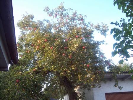 Und hier noch unser vorderer Apfelbaum, der mit den späten Äpfeln... die sind in ein, zwei, drei Wochen fällig zum pflücken, je nach Wetterlage... der ist sowas von voll, der absolute Hammer dieses Jahr!
