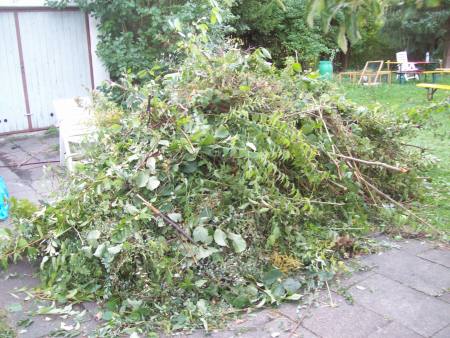 Nun werd ich nächste Woche noch alle Sträucher VOR dem Haus wegmachen und da noch die Hecke schneiden... und damit diesen Haufen mondestens noch etwa verdoppeln: