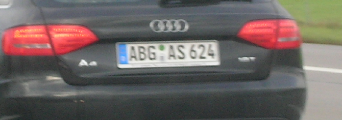 Kurz nach Memmingen überholt uns ein Auto mit einer ABG-Nummer und nach kurzem Stutzen las ich ABGAS *Kicher* Diese Autonummer fanden wir dann so witzig, daß wir unter viel Gelächter und Gekicher dieses Auto verfolgt haben um ein Beweisfoto zu machen... Tataaaaa, hier, bitteschön *gg* Immerhin hatten wir den schon etwa bei Kellmünz eingeholt, also ca. 15 - 20 km später *lach*