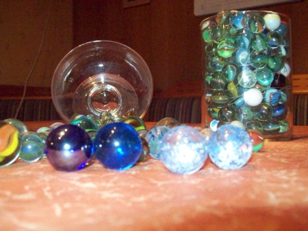 Ich bin ja ein Sammeltier und ich sammle unter vielem anderen hauptsächlich Würfel und "Glucker" (Bücher natürlich auch!!!!!) - leider leider haben sich sowohl Würfel als auch Murmeln drastisch reduziert, seit ich Kinder habe ;-)) Muß mal wieder welche besorgen....