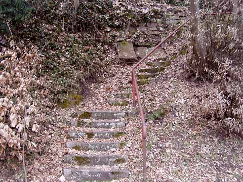 Zuerst mussten Fraule und Gise einige schmale, verwitterte Steinstufen hinaufgehen.