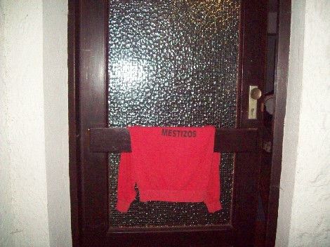 Zum Willkommen war die Tür mit unserem Gruppenpulli dekoriert und so nach und nach trudelten (fast) alle alten Mestizos ein.... die weiteste Anreise hatte unser Pilot - der kam aus Griechenland angedüst :-)