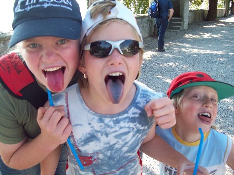 Und nach dem Schifflefahren bekamen die Kinder von ihrem Papa so ein bappsüßes halbgefrorenes Limozeugs ;-)) Die Drei waren happy!