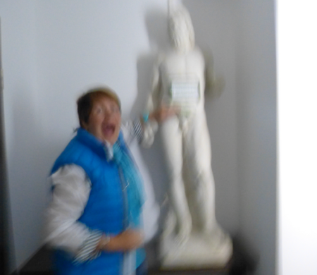 Dort, auf dem Damenklo, steht ein Adonis mit einem Feigenblatt... Und darüber ein Schild „Bitte Feigenblatt nicht anheben“ Bisher hab ich mich auch nie getraut, das Blättlein zu lupfen... Erstens: Warum auch? Und Zweitens: Gerüchte gehen umher, daß dann in dem (fast immer rammelvollen) Wirtshaus eine Sirene oder ein Blaulicht angeht oder irgendsoetwas...