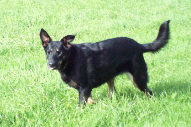Der Weg, naja, eher der schmale Pfad, ging echt über Stock und Stein, mal standen hohe Wurzeln raus, mal versank man beinahe im Wasser... ein richtiger Abenteuerpfad für Kinder halt.... und Ronja??? Die hielt so tapfer mit, es war kaum zu glauben, daß dieser Hund blind sein soll! Natürlich stieß sie ab und zu mal gegen ein Hindernis und einmal rutschte sie sogar mit dem Hinterteil ins Wasser - aber ich hatte den Eindruck, daß sie richtig Spaß hatte und ihr das Blindsein gar nicht so viel ausmacht. Ich war richtig stolz auf mein Hundle! ICH alte, steife, dicke Frau hatte da deutlich mehr Probleme ;-))
