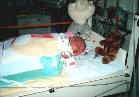 Es war ein Montag, ein Tag vor der geplanten Switch-OP vom Kleinen. Ich kam wie immer morgens vom McDonalds-Haus rüber auf die K1-Station im Deutschen Herzzentrum München, will wie gewohnt in sein Zimmer gehen - aber sein Bettchen ist weg, das Nachtkästchen, alles....LEER! Ich dachte sofort, daß der Kleine die Nacht nicht überlebt hat... Zum Glück war eine ganz liebe andere Mama da, die hat mich aufgefangen, erst mal auf einen Stuhl gesetzt und mir erzählt, daß der Kleine "nur" auf die Intensiv-Station verlegt wurde, weil seine Sättigung so rapide gesunken sei, nur zur Sicherheit. Und weil eben die OP anstand, blieb er dort auch gleich zur Beobachtung.